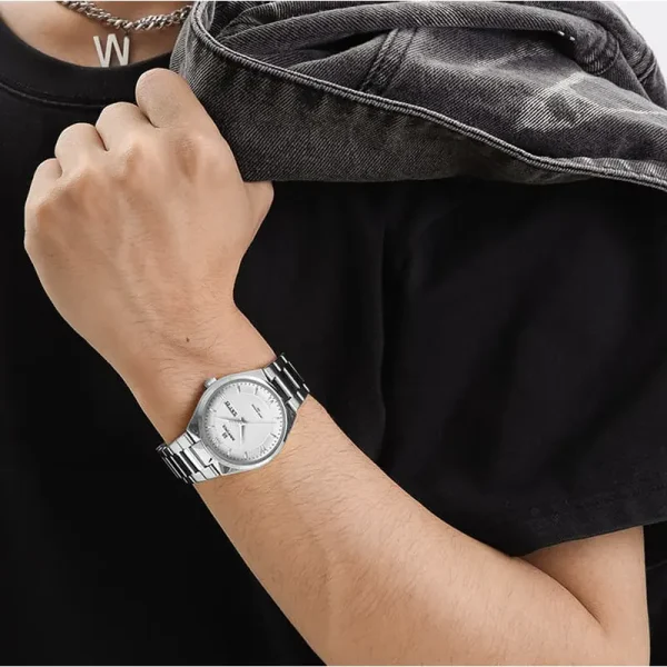 Upgrade your wrist game with the Naviforce 8030 Men’s Watch, featuring a 38.5 mm round stainless-steel case with a 9.5 mm thickness for a bold yet refined presence. It operates on a Japanese Quartz Calendar Movement, complete with day & date display. The sturdy stainless-steel bracelet ensures durability, while the hardened mineral glass protects the dial against scratches. With 3 ATM water resistance, it handles daily splashes with ease. From the office to weekend outings, this watch balances timeless style with dependable performance. Comes with a 1-Year Official Warranty and 100% Authentic Guarantee from cardinalbd.com.