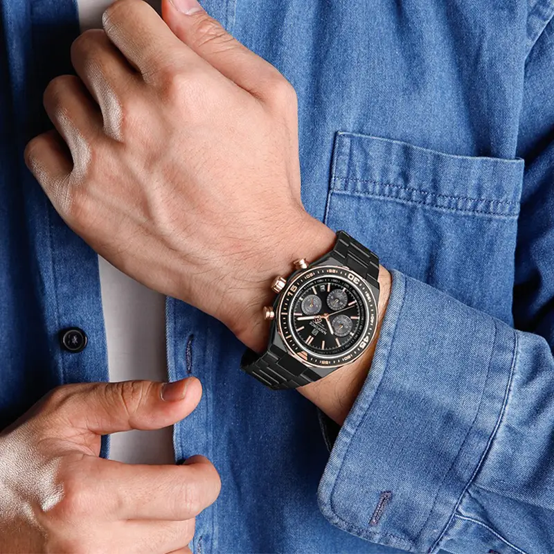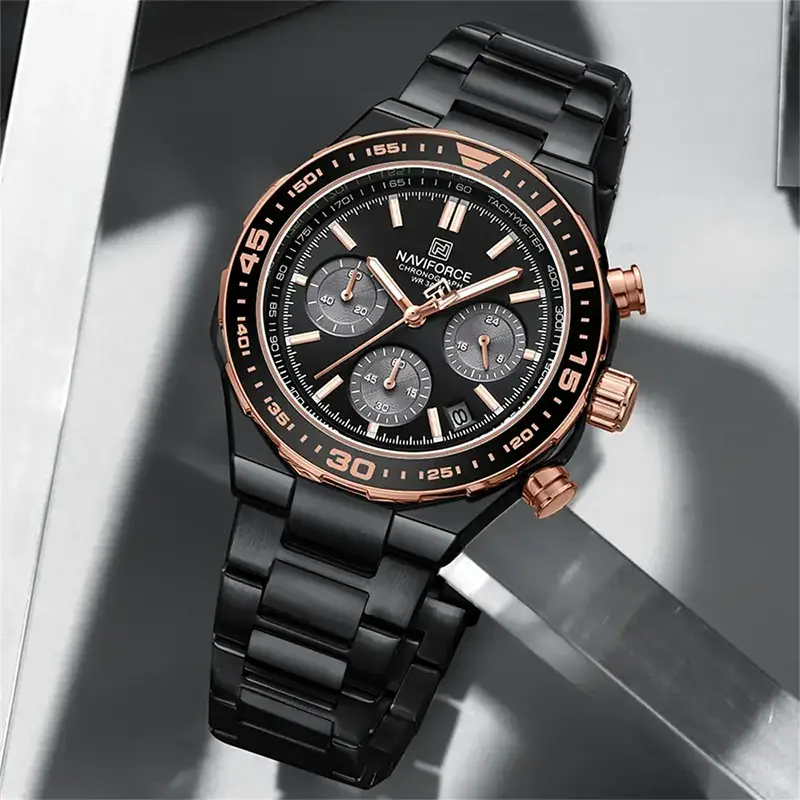 Add sophistication to your wrist with the Naviforce 8049 Men’s Watch, a perfect blend of elegance and durability. Featuring a sturdy alloy case, stylish genuine leather strap, and hardened mineral glass, this watch is designed for modern men who value both looks and performance. Powered by a precise Quartz movement, it includes full calendar features for added convenience. With 3 ATM water resistance, it’s built to withstand splashes and daily activities. Backed by a 1-Year Official Warranty and 100% Authentic Guarantee.