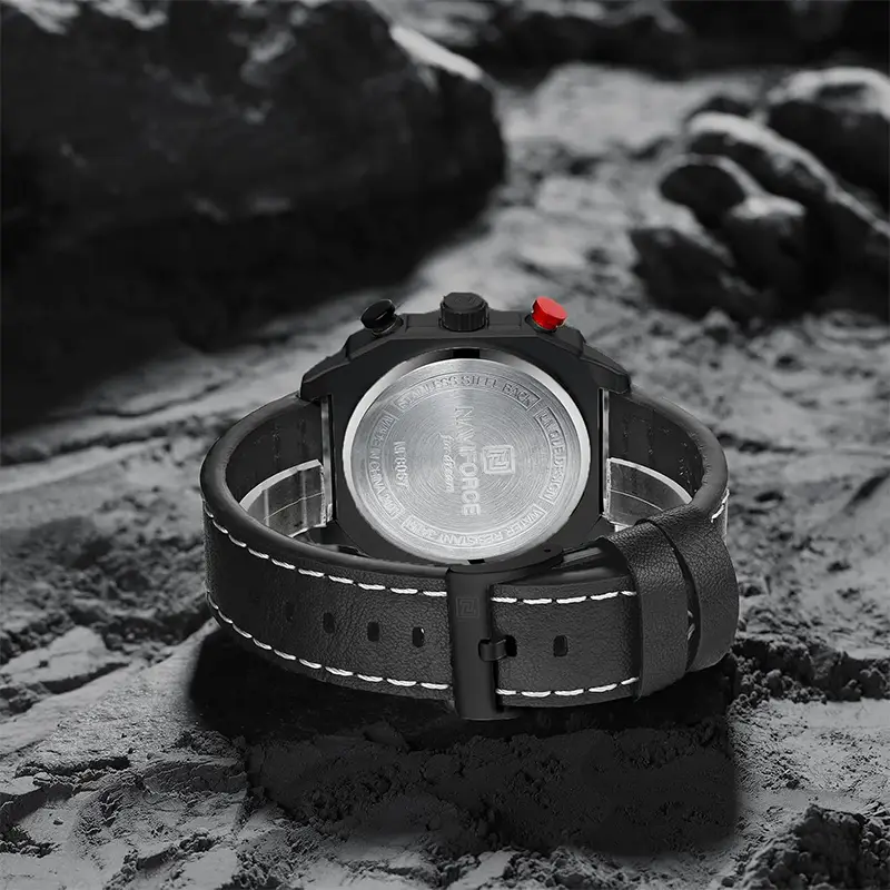Enhance your look with the Naviforce 8057 Men’s Watch, designed for modern men who value style and durability. Crafted with a premium alloy case, comfortable leather strap, and scratch-resistant mineral glass, this watch delivers a bold and elegant appearance. The high-precision Quartz movement ensures accurate timekeeping, while the dual display (analog + digital) offers a multifunctional experience. With alarm, stopwatch, LED backlight, and full calendar features, it’s perfect for everyday wear. Comes with 3 ATM water resistance and a 1-Year Official Warranty for peace of mind.